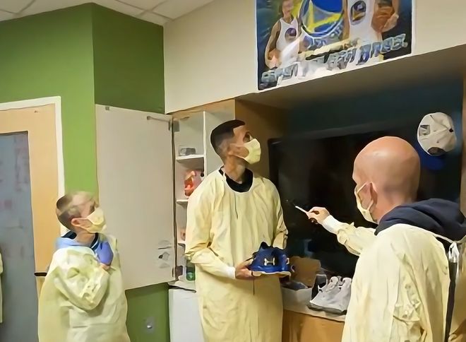 一周后,勇士客場挑戰(zhàn)步行者,比賽前一天,庫里瞞著所有人來到醫(yī)院,想要給布羅迪一個驚喜。